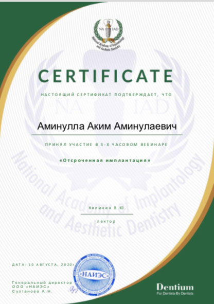 Специализация врача стоматолога Аминуллы Акимы Аминуллаевича