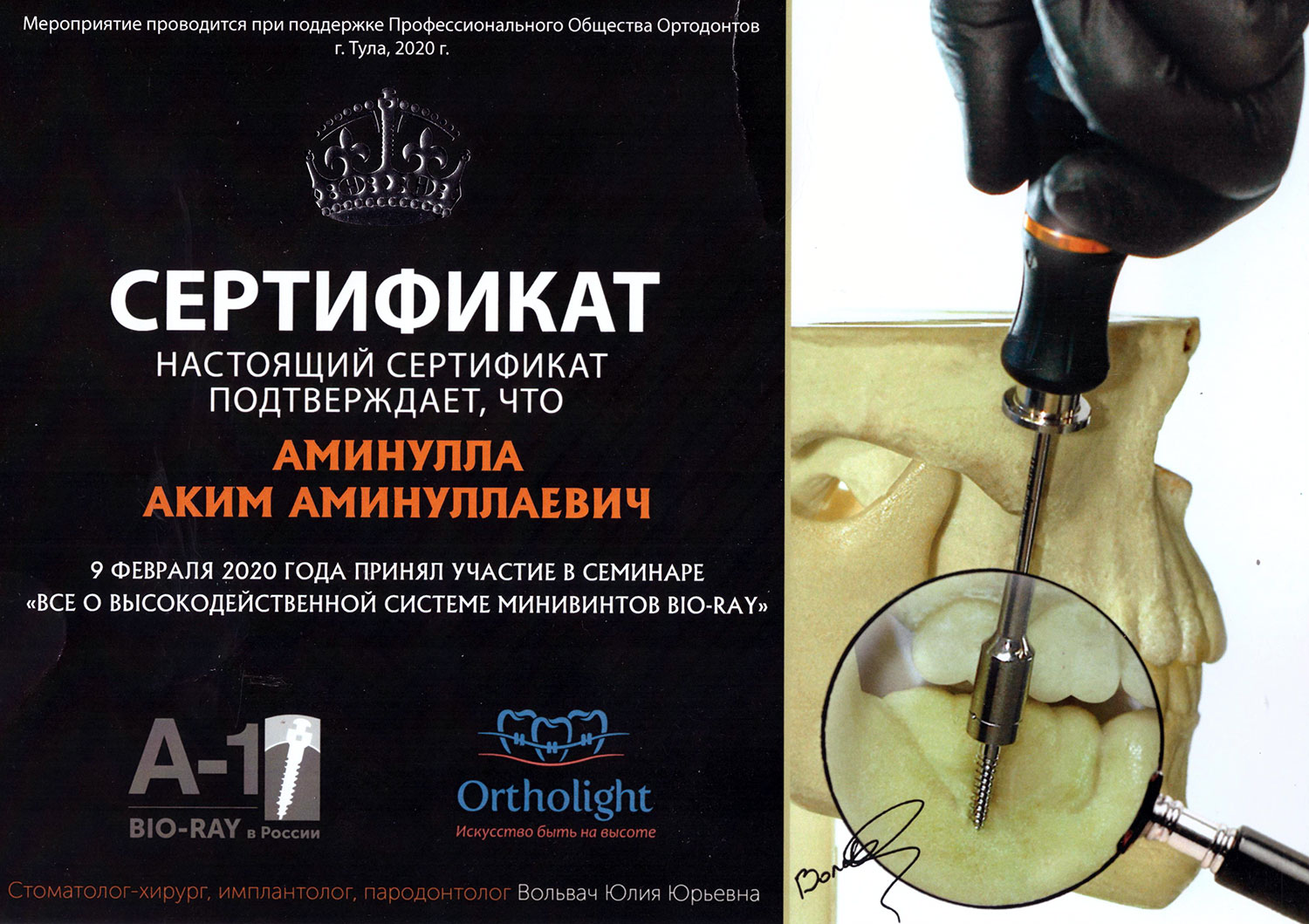 • 2022 - Семинар «Современная кортикальная опора», Ortholight